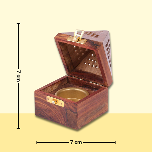 Handcrafted Wooden Stand for Dhoop, Loban, Agarbatti with Metal Plate – Traditional Brown Holder for Puja and Meditation