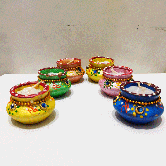 Matki Decorated Candles Pack For Decoration and Gifting - Multicolour