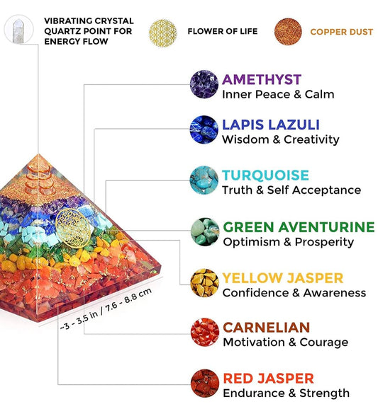 Natural 7 Chakra Crystal Orgone Pyramid for Balancing & Spiritual Connection - Decorative Showpiece