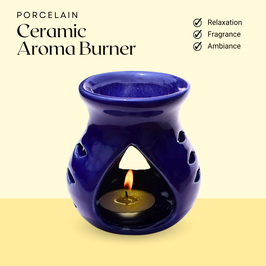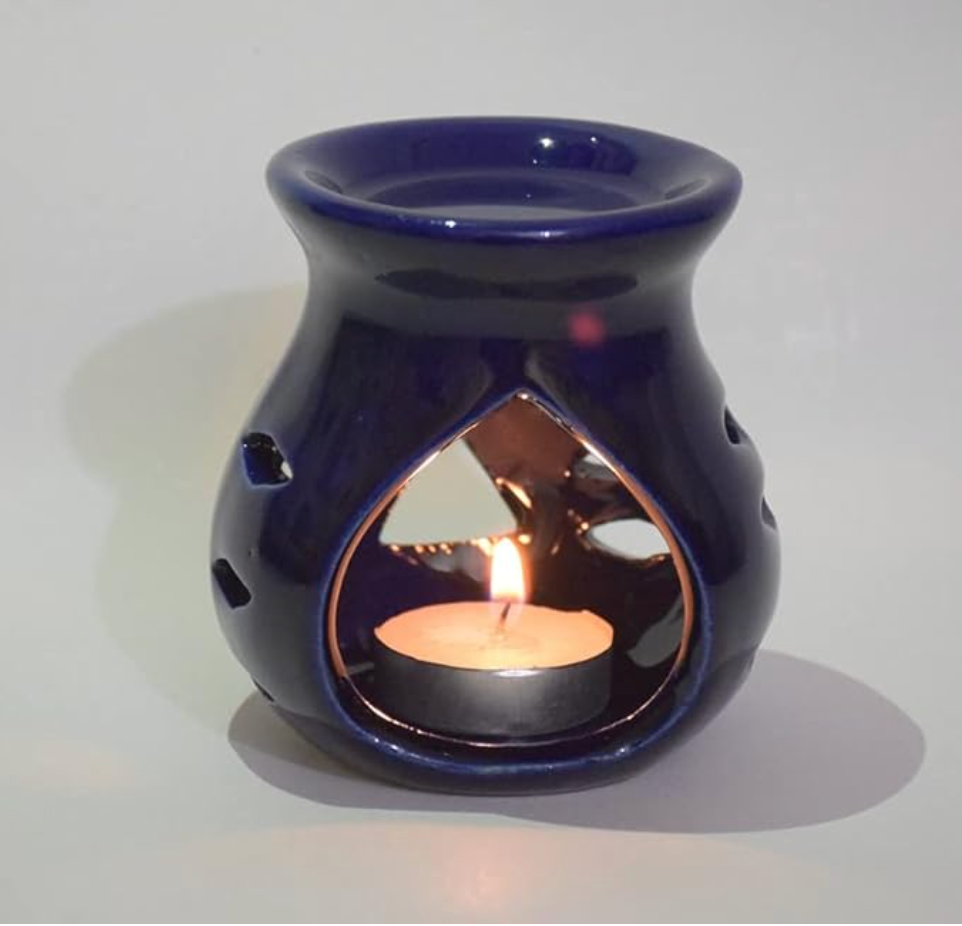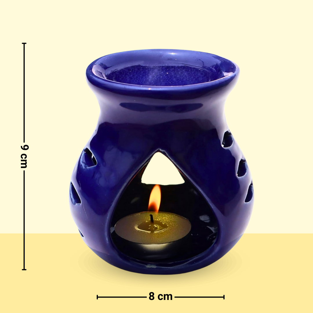 Ceramic Clay Candle-Operated Oil Diffuser – Aroma Burner with Tealight Candle (Blue, 9 cm)