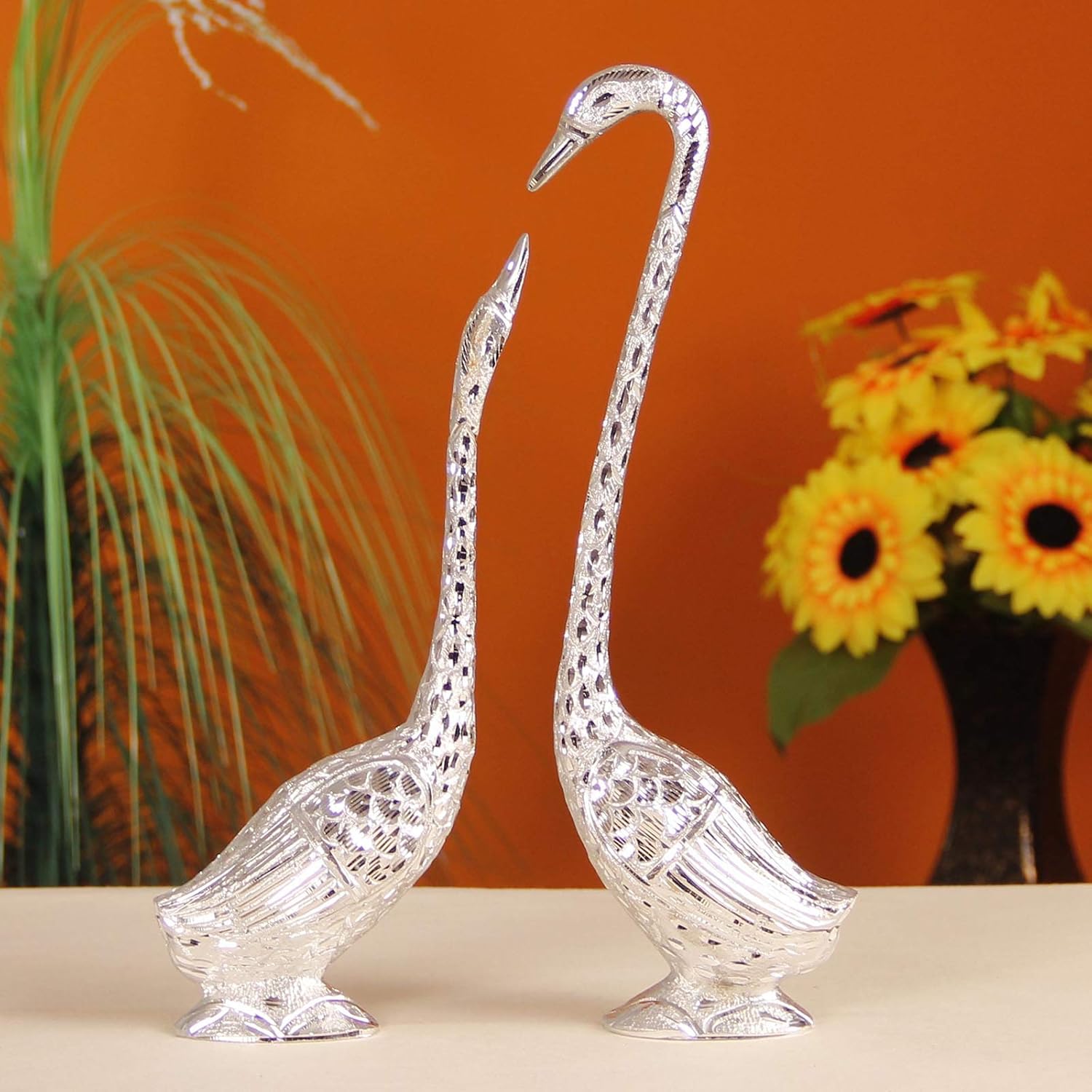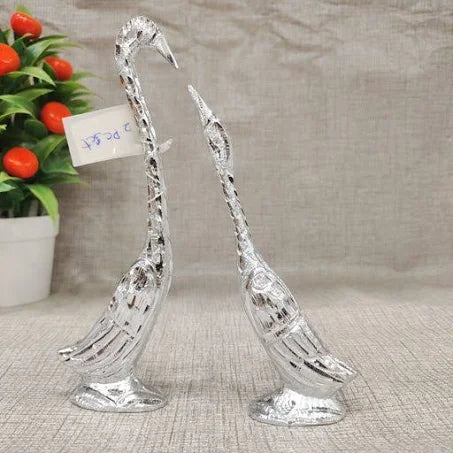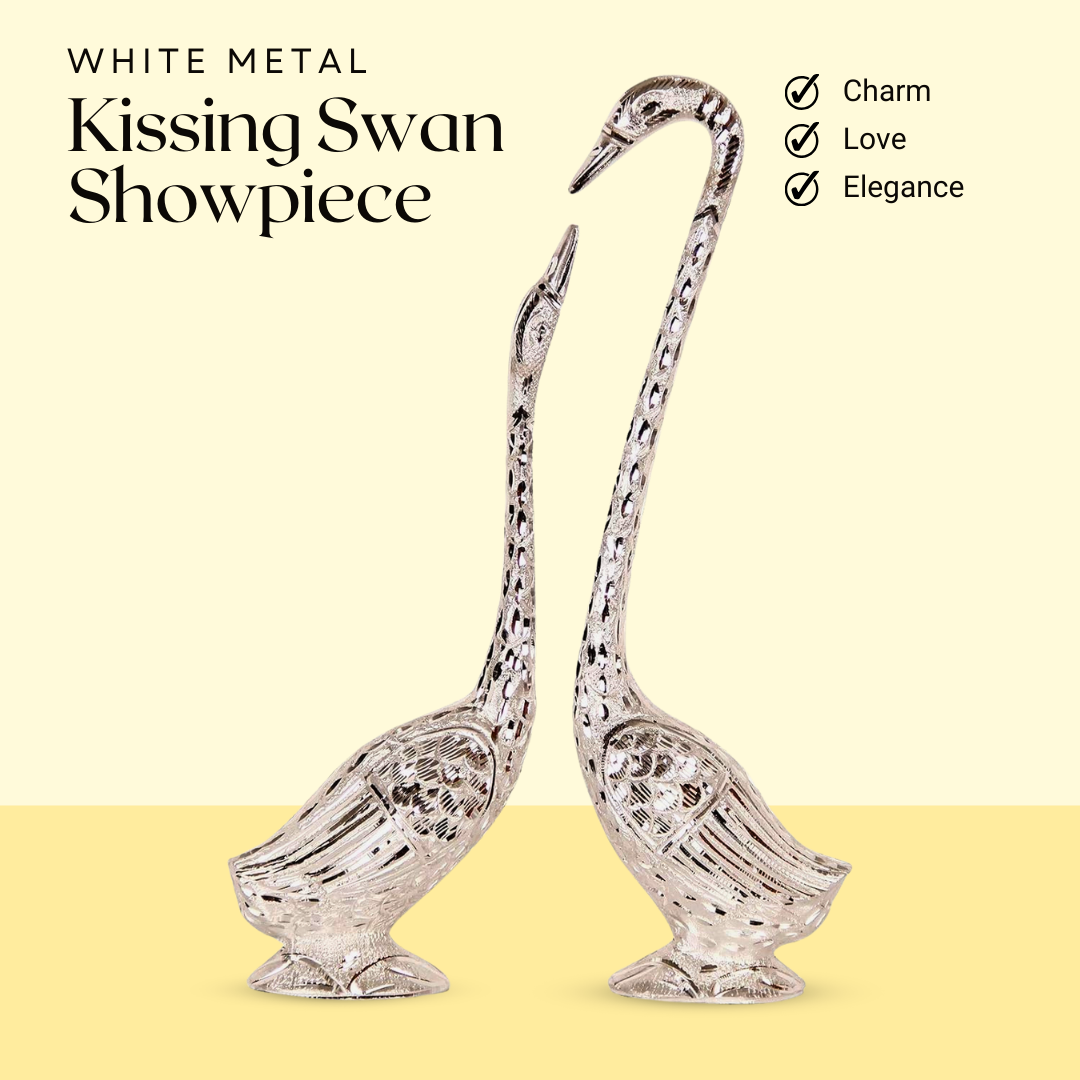 Kissing Swan Pair/Duck Showpiece – Elegant White Metal Pair for Wedding and Home Decor