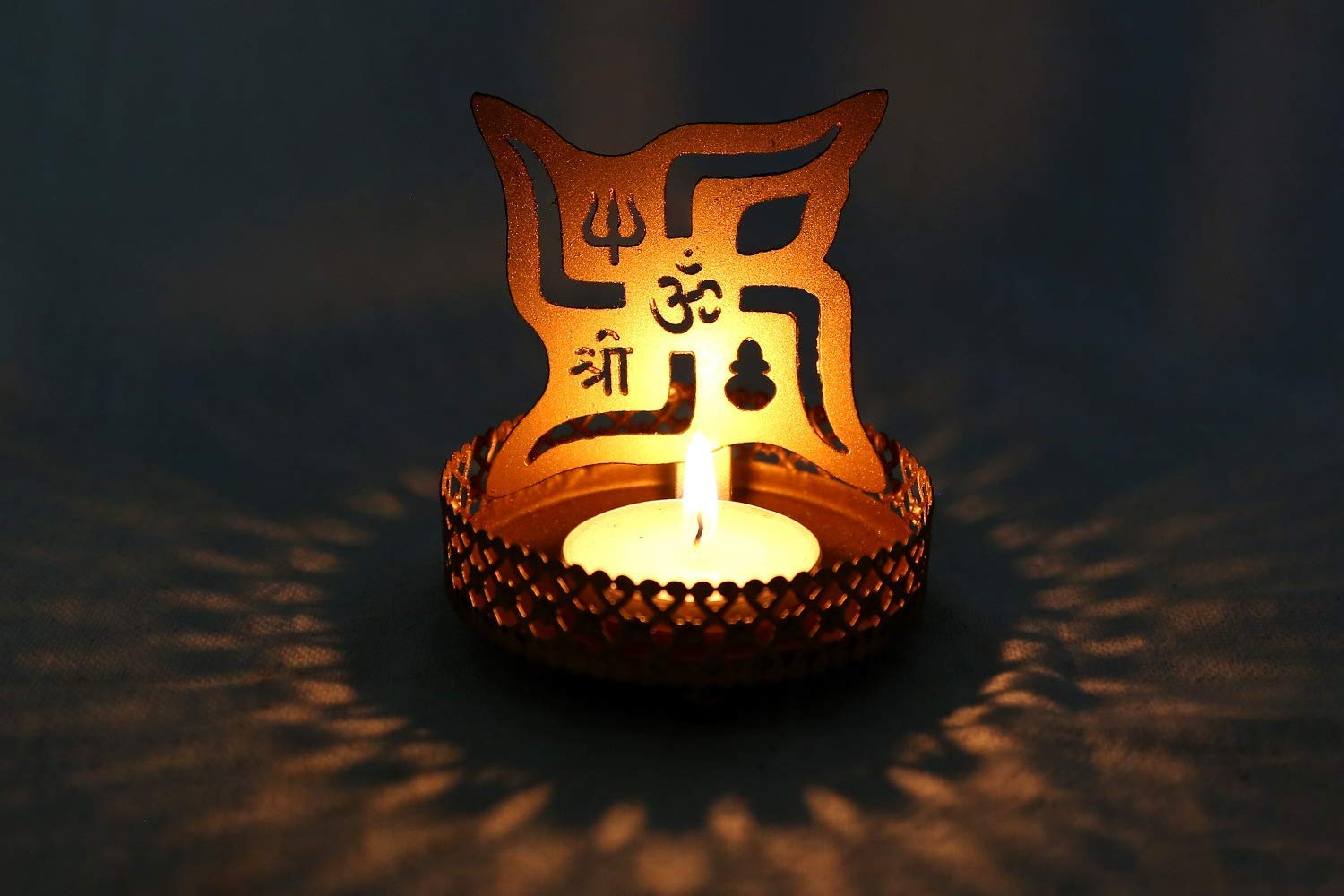 Swastik Backlight Tealight candle Holder - Golden