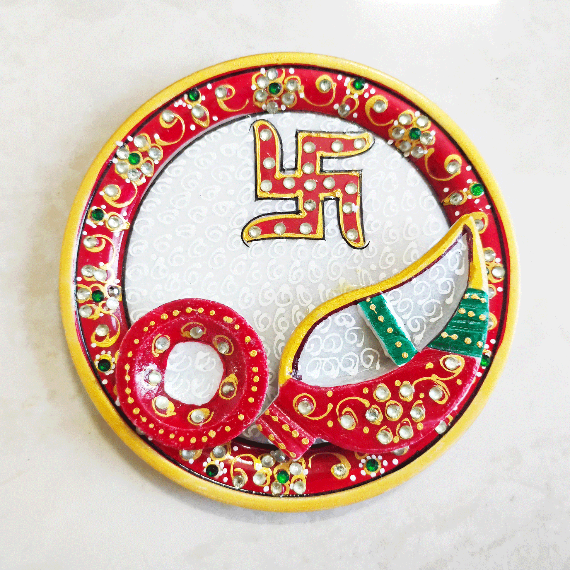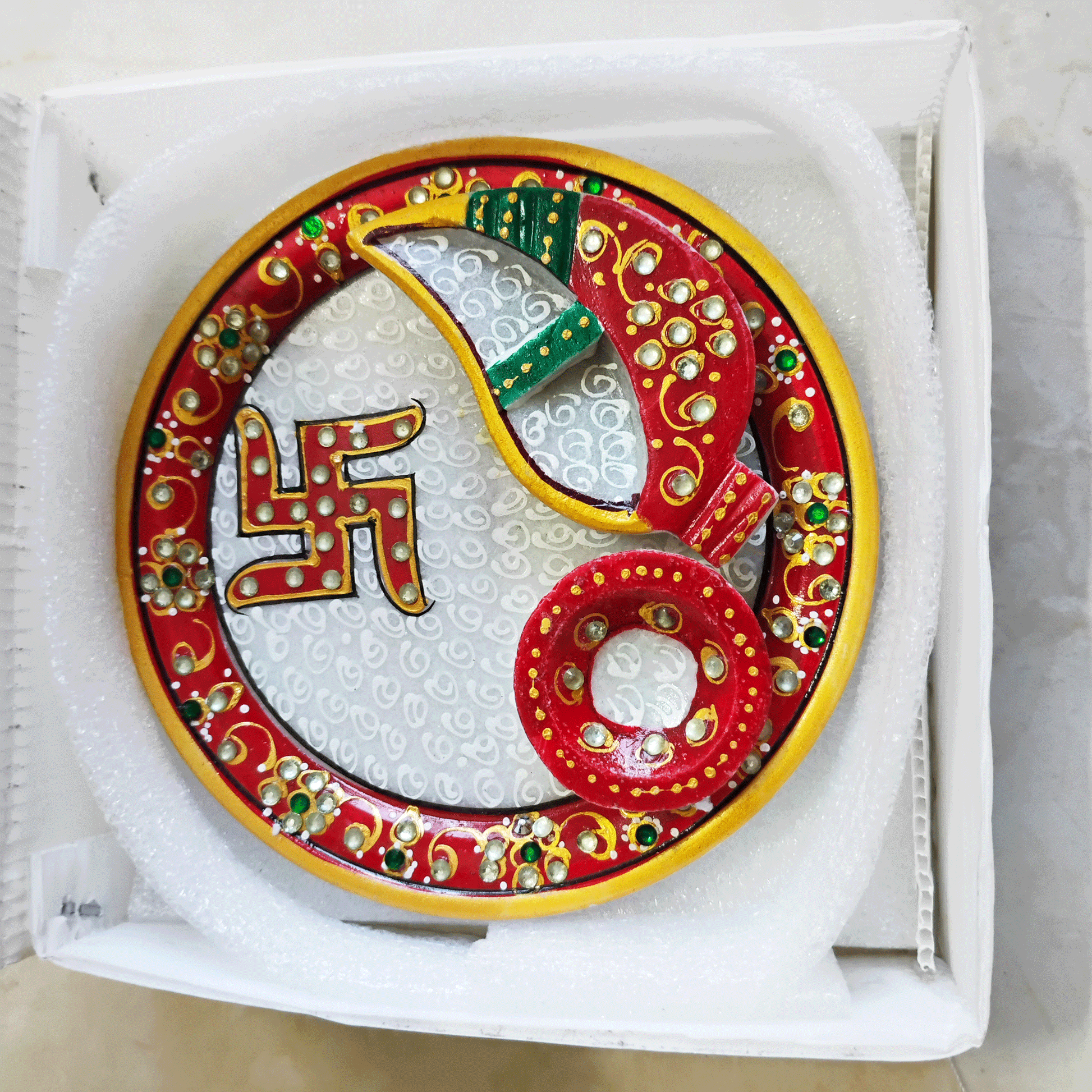 Hand Designed Marble Arti / Tilak / Teeka Multipurpose Tray Jaipuri - Multicolour