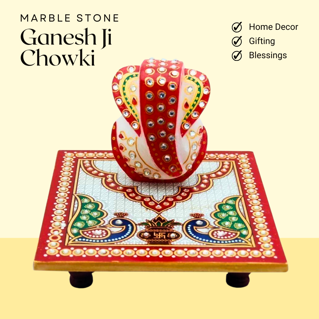 Handcrafted Marble Ganesh Ji Chowki Set – Diwali Special Ganesh Ji & Chowki