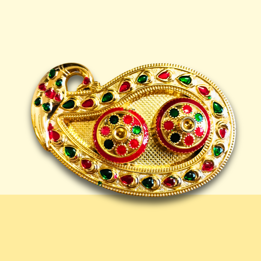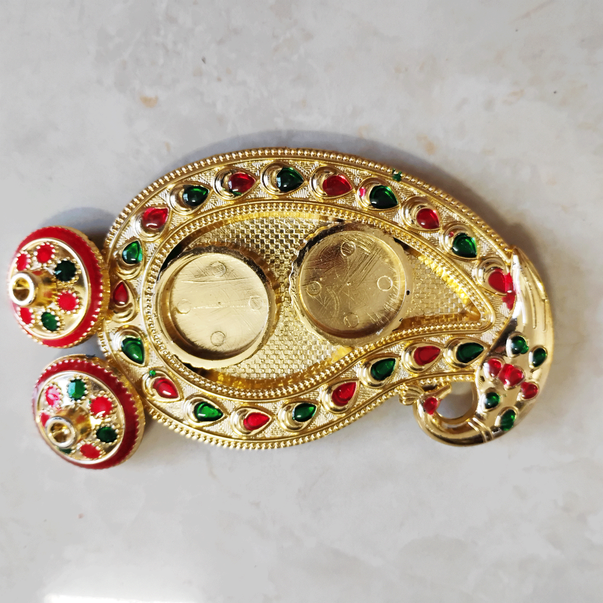 Jaipuri devotion shines through Multicolour Plastic Tilak Tray, Marble Arti Tray, and Metal Ganesh Deepak.