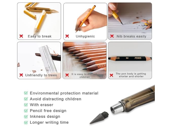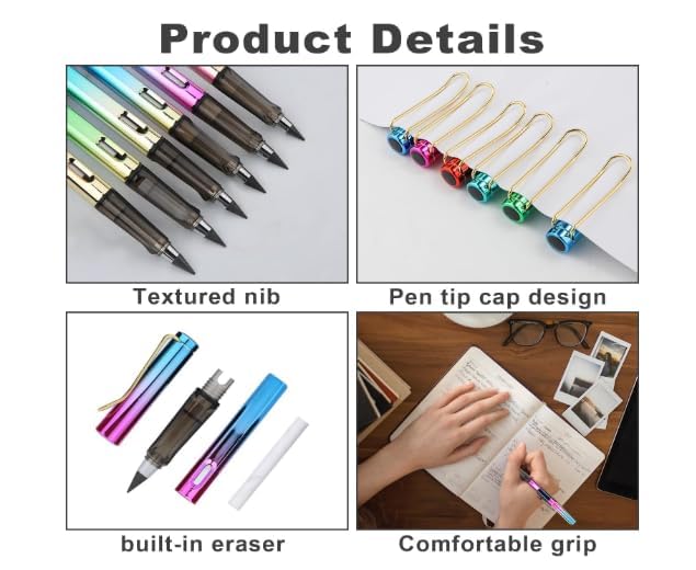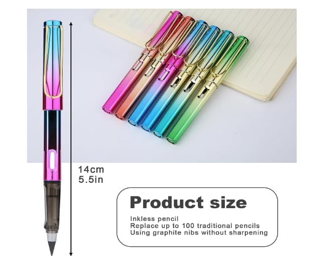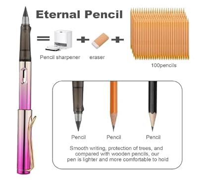 Infinity 1PCS Eternal Pencils, Inkless Everlasting Pencil Inf MBi 1nity Pencils with Eraser Reusable Infinite Pencil Tips for Kids Writing Drawing Sketching (Colorful)