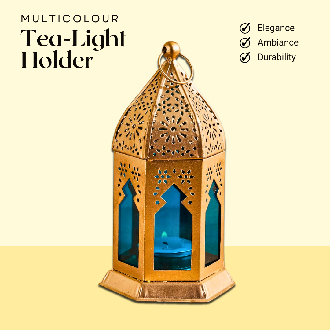 Multicolour Metal Lantern Tea-Light Holder for Home Decor, Festive Celebrations, and Gifting - Durable and Stylish Accent for Indoor and Outdoor Use