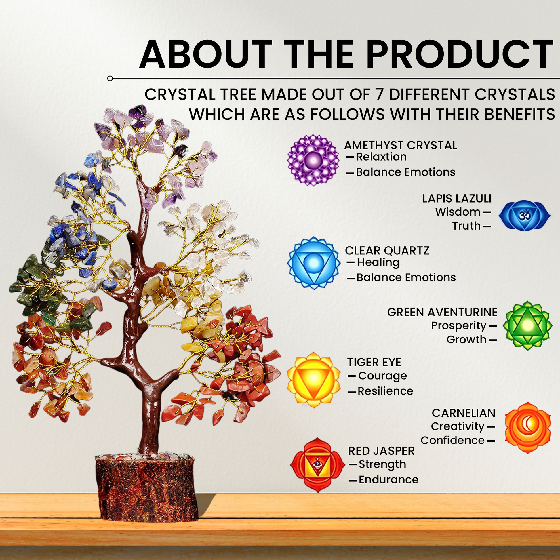 Pack of 2 Seven Chakra Gemstone Trees – Natural Crystal Beads for Health, Wealth, Prosperity, and Home Decor