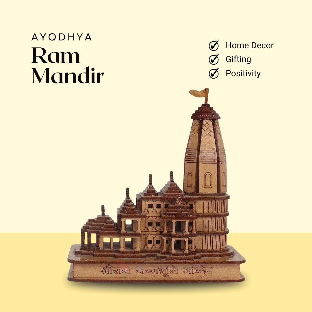 Ram Janm Bhoomi Ayodhya Temple Wooden Showpiece - Brown Decorative Sculpture for Home & Office