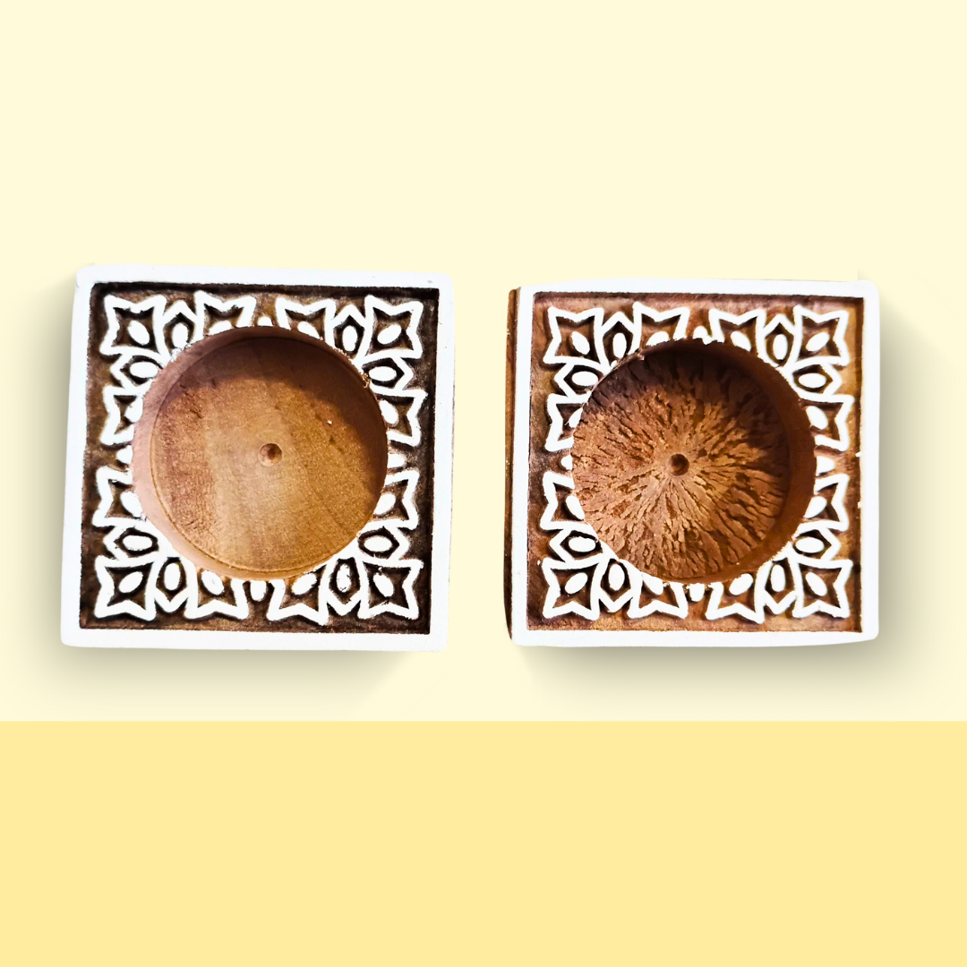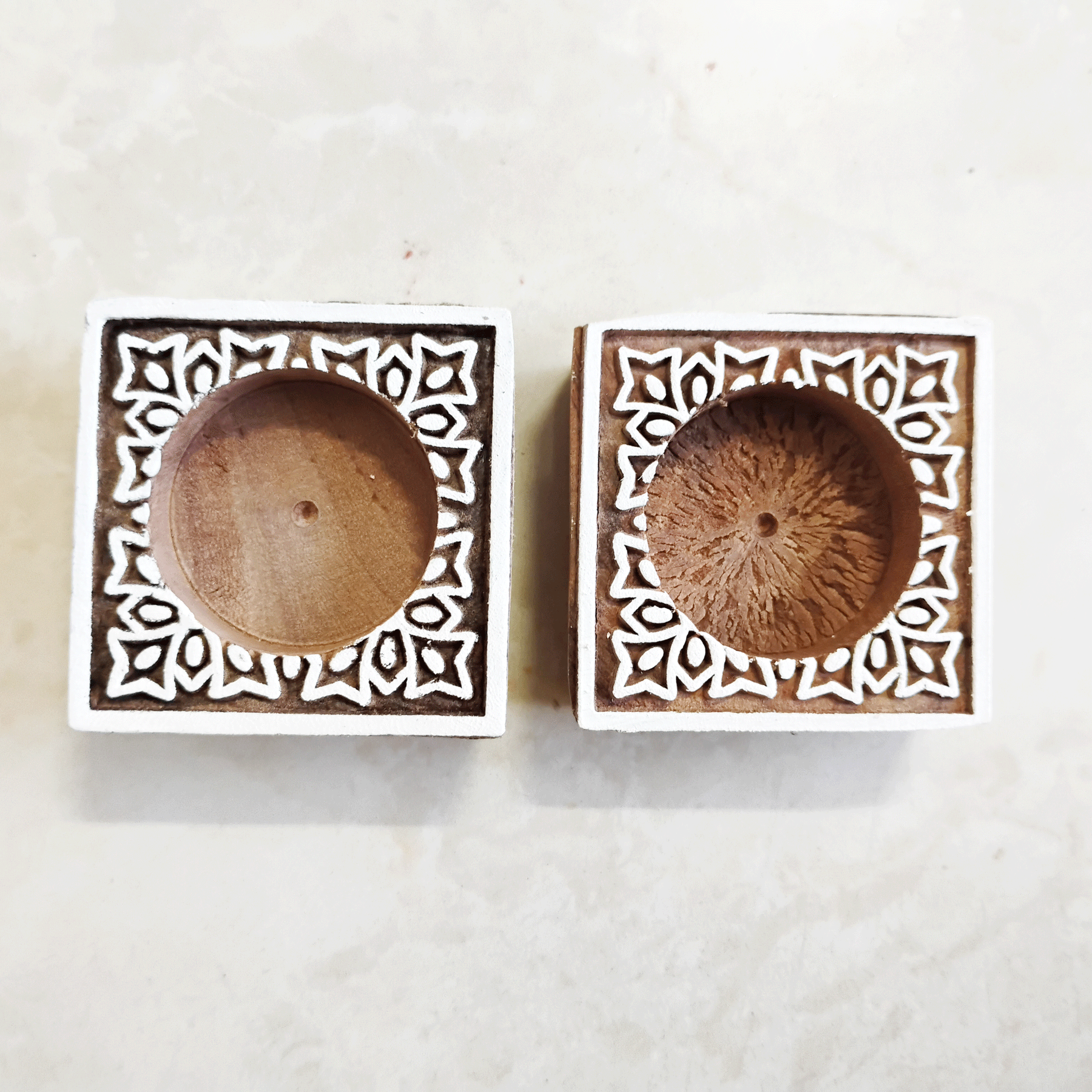 Wooden Handcrafted Tea- Light Candle Holder - White